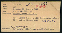 | References: | Publication: Agora XXVI Publication Page: Agora 26, s. 86, p. 60 Publication Page: Agora 26, s. 364, p. 338 Card: ΕΕ-37 |