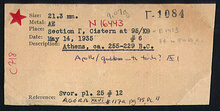| References: | Publication: Agora XXVI Publication Page: Agora 26, s. 121, p. 95 Publication Page: Agora 26, s. 363, p. 337 Deposit: E 14:3 Card: Γ-1084 Card: Γ-1084 |