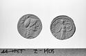 | Obverse: | Head of Athena r., wearing Corinthian helmet. Border of dots. | |