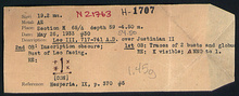 | References: | Publication: Hesperia 9 (1940) Notebook: Η-5 Notebook Page: Η-5-22 (pp. 804-805) Notebook Page: Η-5-30 (pp. 820-821) Card: Η-1707 |