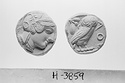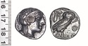 | Obverse: | Head of Athena r., wearing Attic helmet ornamented with palmette and olive leaves. | |