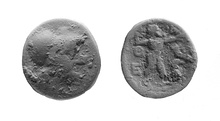 | Obverse: | Head of Athena r., wearing Corinthian helmet. Border of dots. | |