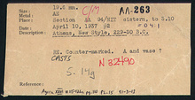 | References: | Publication: Agora XXVI Publication Page: Agora 26, s. 136, p. 110 Publication Page: Agora 26, s. 368, p. 342 Image: 2012.77.1688 (91-3-18) Deposit: D 4:1 Deposit: D 4:1.3 Notebook: ΛΛ-4 Notebook Page: ΛΛ-4-99 (pp. 787-788) Notebook Page: ΛΛ-4-102 (pp. 793-794) Card: ΛΛ-263 |
