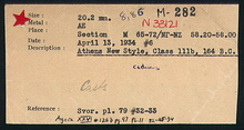 | References: | Publication: Agora XXVI Publication Page: Agora 26, s. 123, p. 97 Publication Page: Agora 26, s. 368, p. 342 Image: 2004.05.0238 (82-45-34) Image: 2012.73.1253 (82-45-34) Card: Μ-282 |
