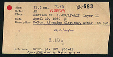 | References: | Publication: Agora XXVI Publication Page: Agora 26, s. 104, p. 78 Publication Page: Agora 26, s. 369, p. 343 Image: 2012.74.1995 (85-19-24) Notebook: ΝΝ-6 Notebook Page: ΝΝ-6-5 (p. 1001) Card: ΝΝ-683 |