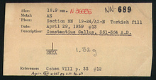 | References: | Publication: Agora XXVI Publication Page: Agora 26, s. 247, p. 221 Publication Page: Agora 26, s. 369, p. 343 Notebook: ΝΝ-4 Notebook: ΝΝ-6 Notebook Page: ΝΝ-4-34 (pp. 659-660) Notebook Page: ΝΝ-6-5 (p. 1001) Notebook Page: ΝΝ-6-6 (pp. 1002-1003) Card: ΝΝ-689 |