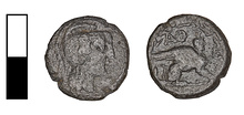 | Reverse: | &AG3;Θ-Ε Sphinx wearing modius, seated r. All in olive wreath. | |