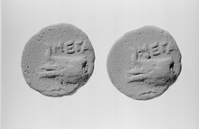| Reverse: | Tripod between two dolphins upward; border of dots. | |