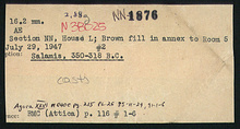 | References: | Publication: Agora XXVI Publication Page: Agora 26, s. 241, p. 215 Publication Page: Agora 26, s. 370, p. 344 Image: 2012.77.1604 (91-1-6) Image: 2012.74.1729 (85-11-29) Card: ΝΝ-1876 |
