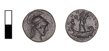 Obverse:   Bust of Athena r., wearing Corinthian helmet.