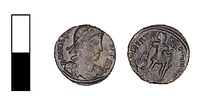 | Obverse: | DN VALEN[TINIAN]VS PF AVG Bust of the Emperor r., draped and pearl-diademed. Border of dots. | |