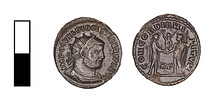 | Obverse: | IMP C C VAL DIOCLETIANVS PF AVG Bust of Emperor r., radiate and cuirassed. Border of dots. | |