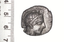 | Obverse: | Head of Athena r., wearing Attic helmet ornamented with palmette and olive leaves. | |