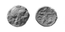 | Reverse: | Α/Ε-Θ Zeus, nude, striding r., hurling thunderbolt in raised r. hand, extending l. arm; at r., star and eagle. | |