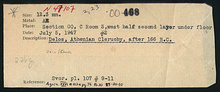 | References: | Publication: Agora XXVI Publication Page: Agora 26, s. 102, p. 76 Publication Page: Agora 26, s. 371, p. 345 Image: 2012.75.0019 (85-20-10) Notebooks (4) Notebook Pages (4) Card: ΟΟ-468 |
