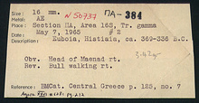 | References: | Publication: Agora XXVI Publication Page: Agora 26, s. 238, p. 212 Publication Page: Agora 26, s. 372, p. 346 Card: ΠΑ-384 |