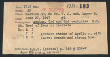 | References: | Publication: Agora XXVI Publication Page: Agora 26, s. 247, p. 221 Publication Page: Agora 26, s. 372, p. 346 Image: 2012.74.1582 (85-7-5) Image: 2012.74.1584 (85-7-7) Card: ΠΠ-183 Card: ΠΠ-183 |