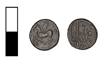 | Reverse: | Trident upward; at r., running griffin. | |