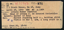 | References: | Publication: Agora XXVI Publication Page: Agora 26, s. 169, p. 143 Publication Page: Agora 26, s. 373, p. 347 Card: ΠΠ-871 |