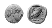 | Obverse: | Head of Athena r., wearing Attic helmet ornamented with palmette and olive leaves. | |