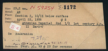 | References: | Publication: Agora XXVI Publication Page: Agora 26, s. 373, p. 347 Image: 2012.73.0810 (82-29-19) Deposit: P 7:10 Card: Σ-1172 Card: Σ-1172 |