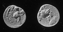 | Obverse: | Head or bust of Athena r., rarely l., wearing Corinthian, Attic, or composite helmet, often highly varied in style. She occasionally wears a necklace. If a head, truncation is either bare or with slight drapery; if a bust, it may be heavily draped or armored with aegis; border of dots. | |