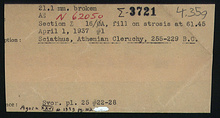 | References: | Publication: Agora XXVI Publication Page: Agora 26, s. 128, p. 102 Publication Page: Agora 26, s. 374, p. 348 Card: Σ-3721 |