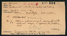 | References: | Publication: Agora XXVI Publication Page: Agora 26, s. 134, p. 108 Publication Page: Agora 26, s. 375, p. 349 Image: 2012.77.1698 (91-3-28) Card: ΣΤ'-584 |