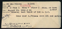 | References: | Publication: Agora XXVI Publication Page: Agora 26, s. 85, p. 59 Publication Page: Agora 26, s. 375, p. 349 Image: 2004.05.0105 (82-42-10) Image: 2012.73.1118 (82-42-10) Deposit: M-N 15:1 Card: Τ-1651 |