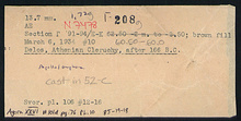 | References: | Publication: Agora XXVI Publication: Hesperia 45 (1976) Publication Page: Agora 26, s. 102, p. 76 Publication Page: Agora 26, s. 363, p. 337 Image: 2012.74.1989 (85-19-18) Card: Γ-208 |