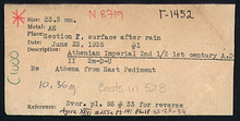 | References: | Publication: Agora XXVI Publication Page: Agora 26, s. 167, p. 141 Publication Page: Agora 26, s. 363, p. 337 Image: 2012.73.0753 (82-27-34) Card: Γ-1452 Card: Γ-1452 |