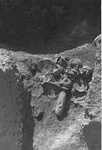 | Description: | Pyre in House D, Room 4 (RSY=Pyre 4) in the industrial area west of the Areopagus. Notebook refers to House N. Pottery belongs late in third quarter of the 4th. c. BC. Pyre burned near beginning of last quarter. Artifacts, burnt bone, and cinders in round pit. The east side of the pit was destroyed by a Roman pit, but the deposit appears to be largely intact. The pyre pit was dug through layer 1 and into layer 2, both of which overlay the foundation of the wall between rooms 3 and 4. Hence the pyre may postdate the abandonment of the house considerably. The hardened and reddened floor of the pit and the location of cinders under the pottery indicate the pyre was burnt in situ. | |