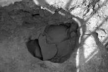 | Description: | Grave 12 in notebook. Cut in bedrock. (E.L. Smithson: Grave VII: PG) Few bones (discarded). Rectangular cutting in bedrock. JP | |