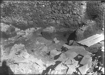 | Description: | Grave 1. Urn cremation (trench-and-hole), adult female 30-40 years old). Mentioned as Grave XVII in Deposit list. Consisted of a roughly circular pit, approximately 0.30-0.40m in diameter, cut into soft bedrock against the face of an outcrop of natural rock, described by the excavator as limestone, to a depth of about 0.35m. P 325 served as cinerary urn and was placed upright within the pit and firmly fixed in place by small stones packed tightly around the amphora from shoulder to mouth. Virtually nothing of the pyre trench survived, but it's presence was indicated by hard red-colored burned earth packed tightly against the rim of the amphora along the northwest side. A few remnants of a stone packing beside the urn-hole, on the north side, probably once continuous with the packing around the urn, contained a few burned sherds, clearly pyre debris. Also P 345 from sifting earth around grave. See also P 34860-P 34866 catalogued as "sherds overlying tombs F 16:3 & F 16:4". | |