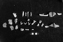 | Description: | Grave 2. Urn cremation (trench-and-hole). In some records as XXIII. Variously labeled as grid 7/Δ, 7/Γ and 7/Γ-Δ. Rectangular pyre trench cut through earth into bedrock, with only the lowest 0.04m surviving. The exact orientation of the trench has not noted in the field, but it appears to have been roughly oriented east to west (or east-southeast to west-northwest). The pyre trench measured about 1.25m long and was 0.52 m wide. The trench floor comprised what appeared to be scorched earth; it contained a few sherds, described by the excavator as being of "small bowls". The urn-hole was located at the east end of the pyre trench; its diameter and depth were not recorded, but judging from the cover stones the pit probably measured just under 0.50m in diameter and was about 0.35m deep. In it, a neck-handled amphora , which served as cinerary urn, was placed in an upright position; it contained the cremated remains of an individual described as an adolescent aged 10-14 years at death. Analysis of the human remains showed that the cinerary urn contained a small child, no more than two years old. See also P 34860-P 34866 catalogued as "sherds overlying tombs F 16:3 & F 16:4". | |