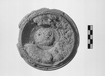 Eighteen stamped amphora handles. Later intrusion represented by type 50B lamp and of late 2nd to early 1st c. Moldmade bowls with thick walls and small indistinct figures similar to those on bowls in G 5:3 and some examples in Thompson's Group C. No long-petal bowls.