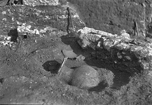 | Description: | Grave 13 in notebook. Two skeletons of small children lay in a pithos which had been put on its side; its mouth was stopped by a stone slab. Most offerings were inside the pithos, but two kantharoi and two oinochoai were placed outside. An animal bone was found under a coarse pitcher left outside the pithos at its mouth; carbonized matter, perhaps from a food offering, was found in one of the kantharoi. No evidence of re-opening, hence this was probably a double funeral. | |