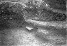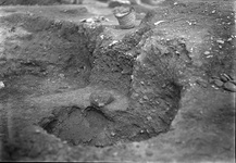 The grave had been somewhat disturbed by the digging of Well B. The hydria lay on its side; in it was found the skeleton of a small child lying on its side with the knees drawn up toward the chest. the grave offering of two small pots had been placed with the body inside the hydria.