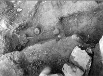 | Description: | Grave 7b in notebook. Inhumation in Tholos Cemetery; The skeleton positioned directly below the male in Grave 7, but with direction reversed, i.e., head at southeast end. Most grave offerings at lower end. Body covered with earth 0.25m thick, then ca. 0.10m ashes and cinders. Probably covered, but slabs removed for Grave XIX. | |
