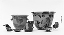 | Description: | Pit in shop I of Roman Stoa, 2.50m. behind the Royal Stoa. Most of the pottery dates to the third quarter of the 5th c. B.C. Many of the vessels were marked with a ligature, indicating that this was the dump for a public dining place. Joining fragments found in deep fill immediately behind Royal Stoa, but with some 4th c. material (container 238). | |