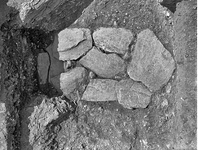 | Description: | Grave 4 under Royal Stoa. Cist Grave cut into bedrock and lined with limestone and schist slabs. There were two layers of cover slabs with a layer of dirt between. Grave measured 0.98x0,25-0,32x0,25-0,30 deep. Rock packing around slabs. Grave of a child, bones in very poor condition. Apparently extended on back. Head to south, grave oriented ne-sw. | |