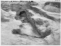 | Description: | Plundered Chamber Tomb. (Tomb XII). A few meters SE of the great white marble altar. The chamber is an irregular rectangle, oriented roughly N-S, with dromos leading in at a very gentle slope from the north. The dromos had been cut through by a Turkish well. The tomb itself was of irregular enough shape to suggest that it had never been completed. A very few sherds and fragments of bone were recovered from the upper levels of the collapsed bedrock with which it was filled. It seems probable that the tomb collapsed before burials were made in it (the lower 1.80m of the tomb contained only collapsed bedrock and no sherds.) and perhaps the dromos may have been used as a sacrificial pit of some sort | |