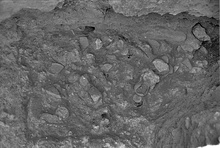 | Description: | The pyre was uncovered in a small, triangular area between the BZ Building foundations (but at a lower level) and the northern scarp of the current excavation area. It rested in a patch of orange-brown fill left over after scarping operations related to the BZ Building foundations in 2004. The pots were deposited over an area of 1.15m. x 0.50m. Found amongst the pyre fill were pieces of burnt bone, concentrated areas of charcoal, and iron slag. All finds were kept, as was the fill, for future analysis and flotation. No evidence of an associated floor surface came to light. At the time of writing, the finds from the pyre and associated pottery (baulk cleaning, 1701, 1702) are still in conservation. They will be pieced together by conservation and then examined in detail by another supervisor, Marcie Handler, during autumn 2006. The preliminary date for this pyre is Early Hellenistic. This will no doubt be refined once the pottery is examined in detail. | |