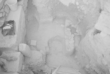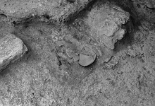 | Description: | This pyre was found within an otherwise mostly sterile fill directly under a white floor surface in the southern section of Area IV. It was located ca. 0.50m. east of a similar deposit, Pyre J 2:25. The pots were mixed with heavy concentrations of charcoal and found across an area measuring 0.47-0.50m, east to west, 0.31-0.43m, north to south. XRF analysis indicated that the lead levels associated with this pyre far exceed typical levels seen in most fill and fill associated with Pyre J 2:25, located just to West. | |