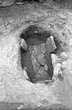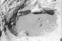 Description:   Cist grave for two infants. The grave was cut into a sterile rocky layer on its southern and western sides, and a sterile fill layer on its northern and eastern sides. No obvious grave marker was present, although three flat stones arranged at the northern end of the grave were documented in the layer immediately above the grave (Lot ΒΖ 2281), and these stones may have been part of the disturbed covering for the grave. A piece of the handle of the cup was found 30 cm higher in the grave filling than the cup itself, and parts of the rim and neck of the amphoriskos were never recovered (even though water sieving), providing further proof that the grave was at least partially disturbed. We removed approximately 29 cm of dark grayish-brown gravely fill from the inside of the grave. All of the soil within the grave was water-sieved, and the shell, charcoal, etc. were saved as sample AS 2233.