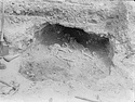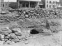 | Description: | Mycenaean Chamber Tomb under north side of Temple of Ares, towards its west end.(1951). The tomb had a hasty and unfinished appearance oddly at variance with its long history and the quality of the pottery found inside. The original dromos ran from west to east and entered the chamber toward the south end of the long west wall. The doorway itself was only 0.80m wide. The chamber was a small room roughly hewn out of bedrock. It formed an irregular triangle in plan, with the apex to the north: 2.00m wide by 2.85m long. The roof had apparently been a low one, rising just over a meter above the floor. A small niche, 0.50m square and raised 0.25m above the chamber floor, was set in the wall at the southwest corner of the room. The chamber was approached by a second dromos and door leading in from the northeast. Centered in the northeast wall, this second doorway was only 0.59m. wide, but well cut. The dromos leading to the second door scarcely deserved the name, being stubby and narrow, 1.58m long with a maximum width of 0.75m. The northeast end was rounded, and plunged precipitously 1.05m down from bedrock level with no trace of steps or ramp. | |