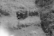 | Description: | Grave. Roughly circular pit with scraps of bone and traces of carbonized material. Four similar empty pits nearby with a little Geometric pottery. | |