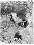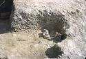 | Description: | Mycenaean grave. It consisted of a shallow rectangular cutting in bedrock about 1.40m by 0.70m, but it was probably somewhat bigger, since the east side and a large part of the north side had been cut away by later builders. It contained a single burial, that of a small child, laid lengthwise in the grave along the south side. Only the skull was preserved in position. Many minute glass beads were found under the skull and around the feeding bottle, and doubtless came from a necklace worn by the child. | |