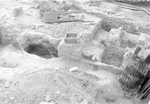 | Description: | Grave (E.L. Smithson: Grave III: SM). The close proximity and similarity of this tomb and tomb M 16-17:1 strongly suggests that they were intentionally laid out in relation to one another and were contemporary. Smithson considered Tomb 1 as containing the mother of the infant inhumed in Tomb 2. The tomb consisted of a rectangular pit cut into bedrock to a preserved depth of 0.30m. Oriented north-south, the tomb measured 0.50m and 0.12-0.15m wide; it was slightly undercut, with traces of a ledge running the length of the tomb on both sides. Fragments of a coarse basin, were intentionally broken and placed above teh tomb as a cover, spanning the full length of the pit. Within the pit, the skeleton of a fetus or newborn infant was placed on its back in an extended position, head to the south. There were no distinct grave offerings. The fill of the tomb pit largely comprised redeposited bedrock chips. AA 317: Owing to the fragility of the bones, the skeleton was encased in a large wax slab, making it impossible to study the human remains without X-rays. | |