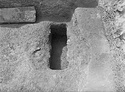 | Description: | Mycenaean Chamber Tomb occupies a considerable part of the western half of section ΕΕ; lies about half way up the north slope of the Areopagus towards its eastern end, just below the highest point of the hill. The tomb consists of a roughly rectangular chamber approached from the north by a long dromos. it is entirely hewn out of the rock of the hill and except for the wall of rough stones that blocked the doorway, there is no masonry. The rock from which it is cut, is the greenish clayey shale which underlies most of the Agora area. The dromos has a preserved length of about eleven meters. It was originally several meters longer but its northern end was cut off by a late Roman retaining wall. For most of its length it is about two meters wide, but near the door of the chamber it widens slightly to about 2.40m. Its sides are not vertical, but slope slightly inward so that the highest preserved point the width is only about 1.50m. The floor of the dromos is not quite level but slopes very slightly downwards toward the chamber, being about 20 cm lower in front of the door, than it is at the outer end. The maximum preserved depth in front of the doorway is about 2.90m but originally it must have been a meter or two deeper, for the surface of bedrock has been considerably cut down here in modern and ancient times. The fill of the dromos was uniform throughout its length: soft clean greenish earth with pebbles and occasional small stones; few sherds. The only disturbances in this fill were three pits of the Turkish period near the north end. The door or entrance passage is narrower than the dromos (width ca. 1.20m and narrows very slightly to about 1.10m at the top; maximum height 2.40m). It is tunneled into the bedrock and has a slightly rounded roof which is nowhere very well preserved. Its outer or northern end was blocked by a neatly made dry wall of rough field stones. This wall was 1.40m thick and ran right up to the roof of the passage. It had obviously never been disturbed since the day it was built. When we removed the wall we were able to support the crumbly bedrock roof with plaster and iron rods. No objects of any sort were found either in or under the wall. The inner and southern end of the entrance passage was filed with fallen bedrock from its own roof and eat side. The chamber (max N-S dimension 4.30m, max E-W dimension 5.90m, max height 2.75m) is roughly rectangular in shape and is entirely hollowed out of the rock. It is not symmetrically set with the dromos, but it is set at a slight angle. Its sides are not straight, either vertically and horizontally; its angles are not right angles; Its corners are rounded. Its roof has entirely caved in, except for a small bit projecting at the north end of the west side; probably was not flat but slightly concave (all along the north side it seems that it rises from the sides toward the center). Across the east and west ends of the chamber there is a low rock-cut bench (average width 0.75m; average height 0.60m). There is only one grave cutting in the floor of the chamber, neatly placed in the SW corner (1.80m length; 0.60m width; 1.20m depth). Its cover slab, a piece of grayish slaty stone (1.90m length; 0.60m width; 0.15m thickness), lay on the floor beside it. The fill in and above the chamber had not been seriously disturbed since Mycenaean times. High above the chamber to the south, about five meters above its floor, is the remains of a wall of a late Roman house, part of which passed over the southwest corner of the chamber and had to be removed. About a meter below this, and again over the southwest quarter of the chamber, was a corner of light rubble wall of late hellenistic times. Neither of these walls disturbed the tomb proper in any way. Body and offerings were removed from the grave not long after they had been placed there (Mycenaean times); the chamber must had been entered by digging down from the top in the western half. | |